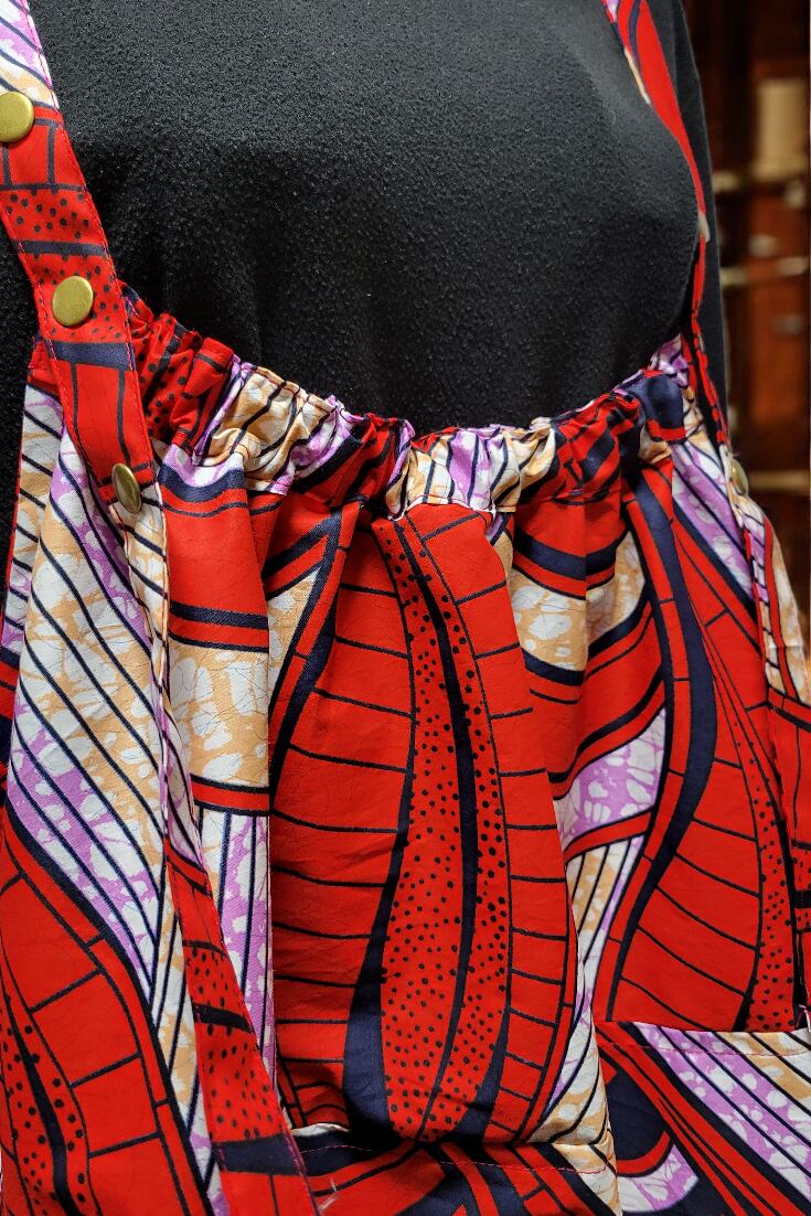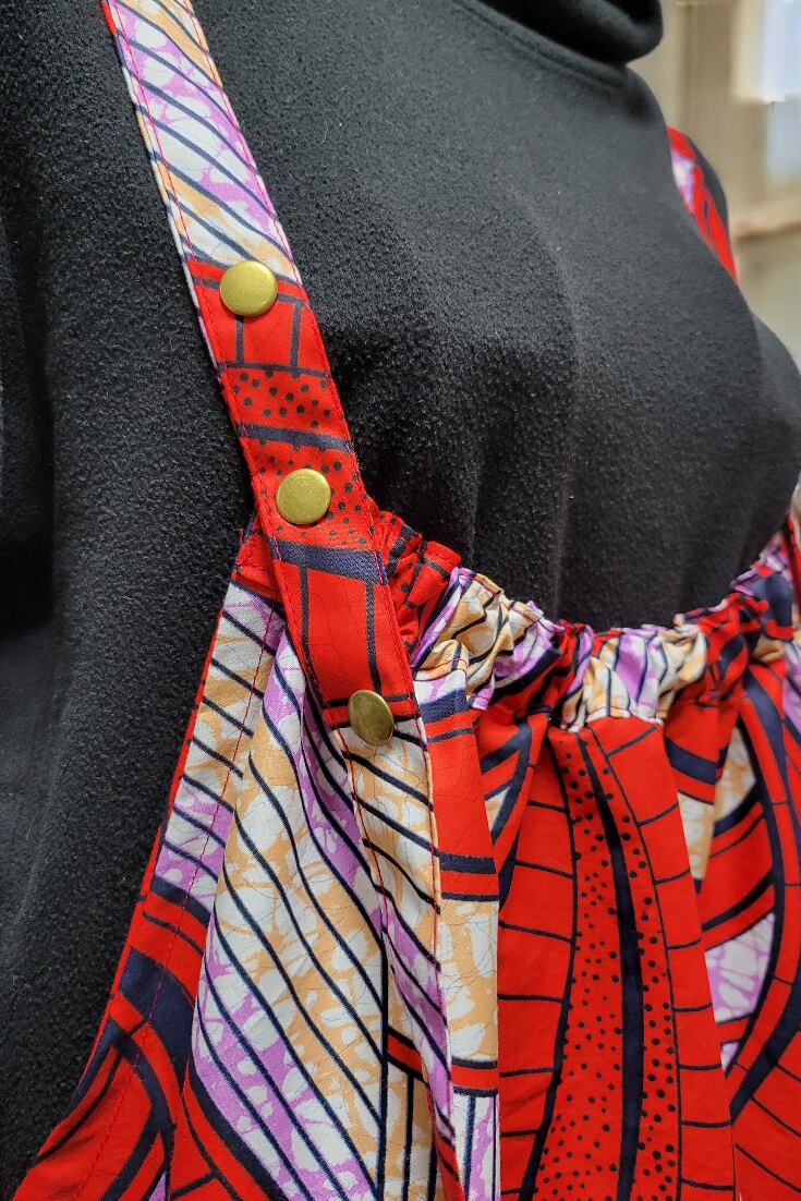最近良く見かける サロペットやオーバーオールの前部分を下げて着るタイプのアフリカン仕様!