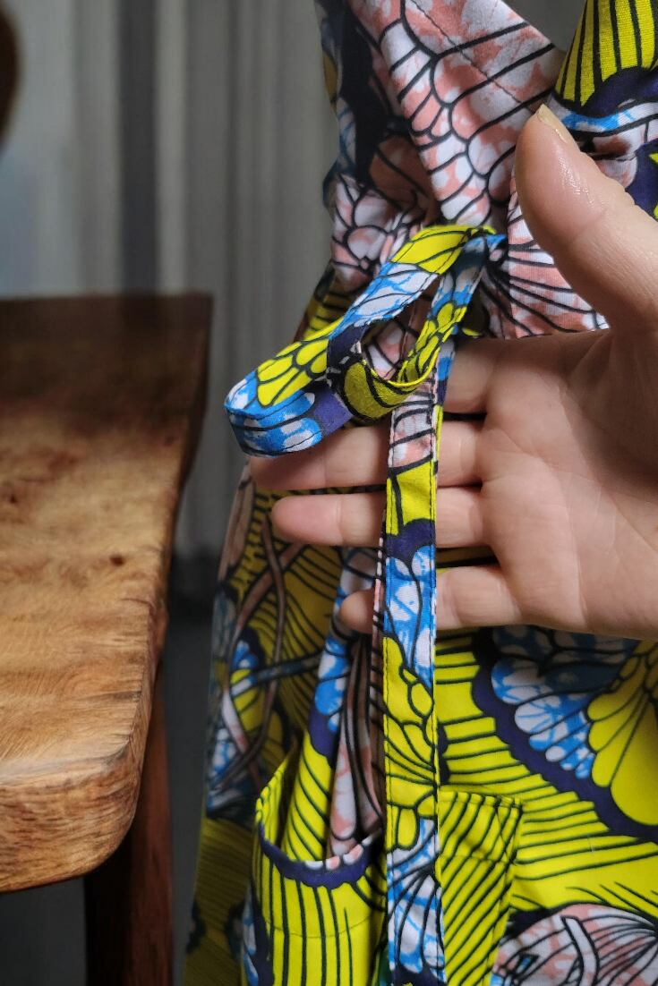 紐を絞らなくても可愛いワンピースに仕上げました✨